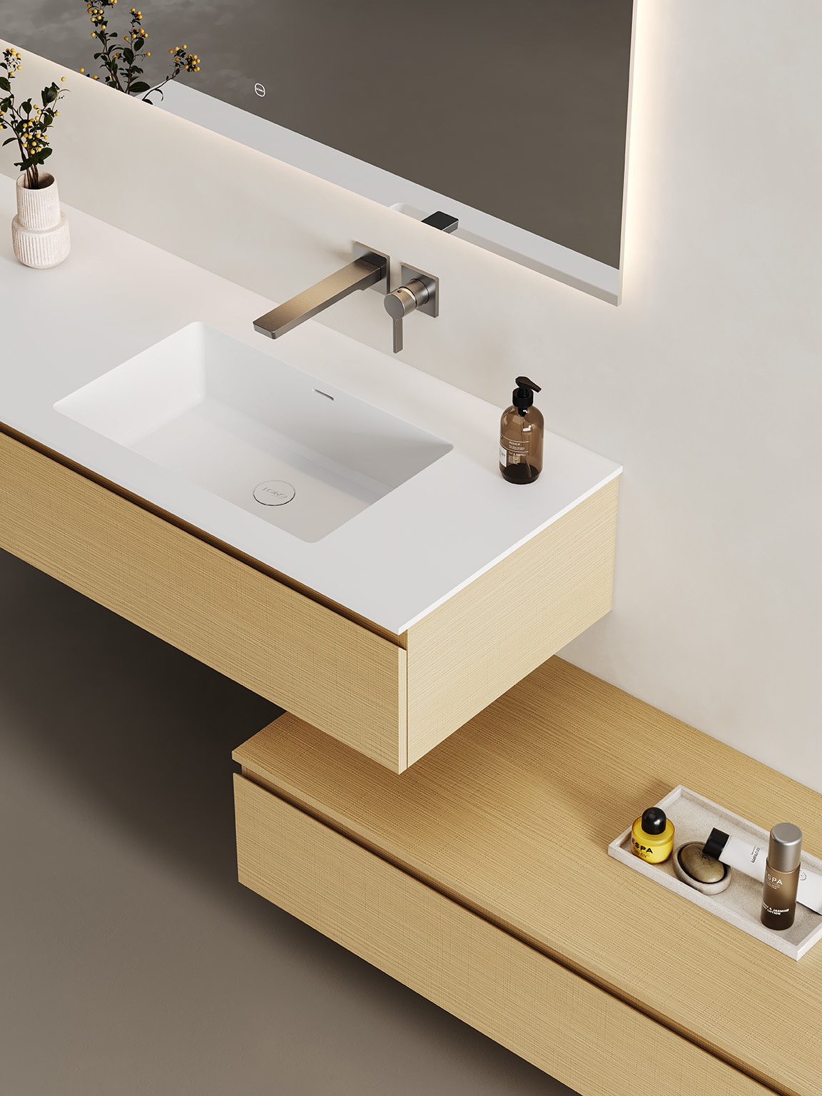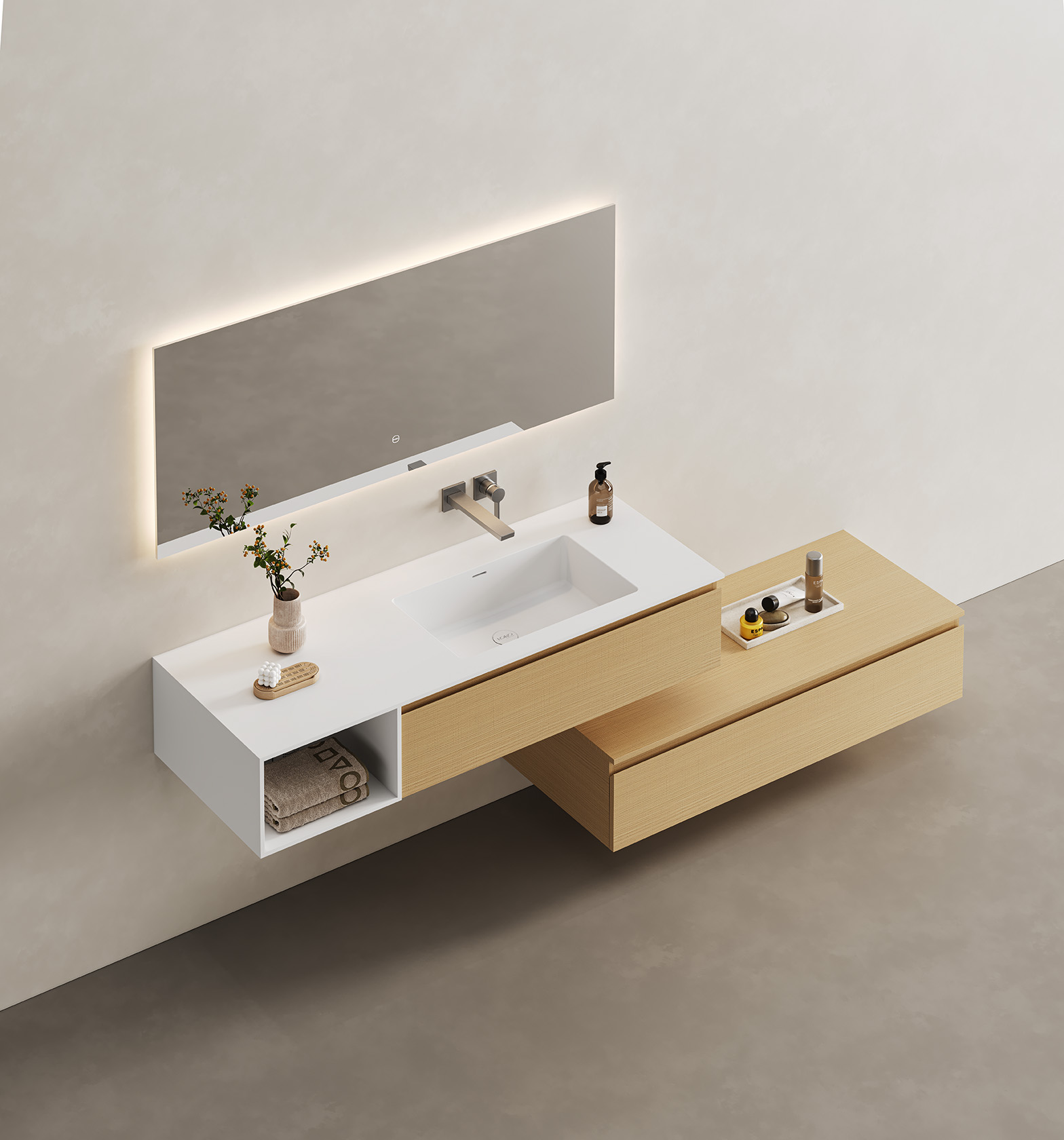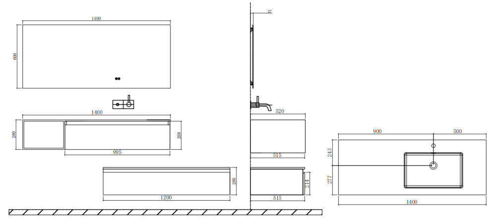 | Standard Model Parameters | Cabinet:995*515*268mm;Basin:1400*520*280mm;Mirror:1400*600*27mm, Cabinet:1200*515*260mm;Basin:1400*520*280mm;Mirror:1400*600*27mm |
