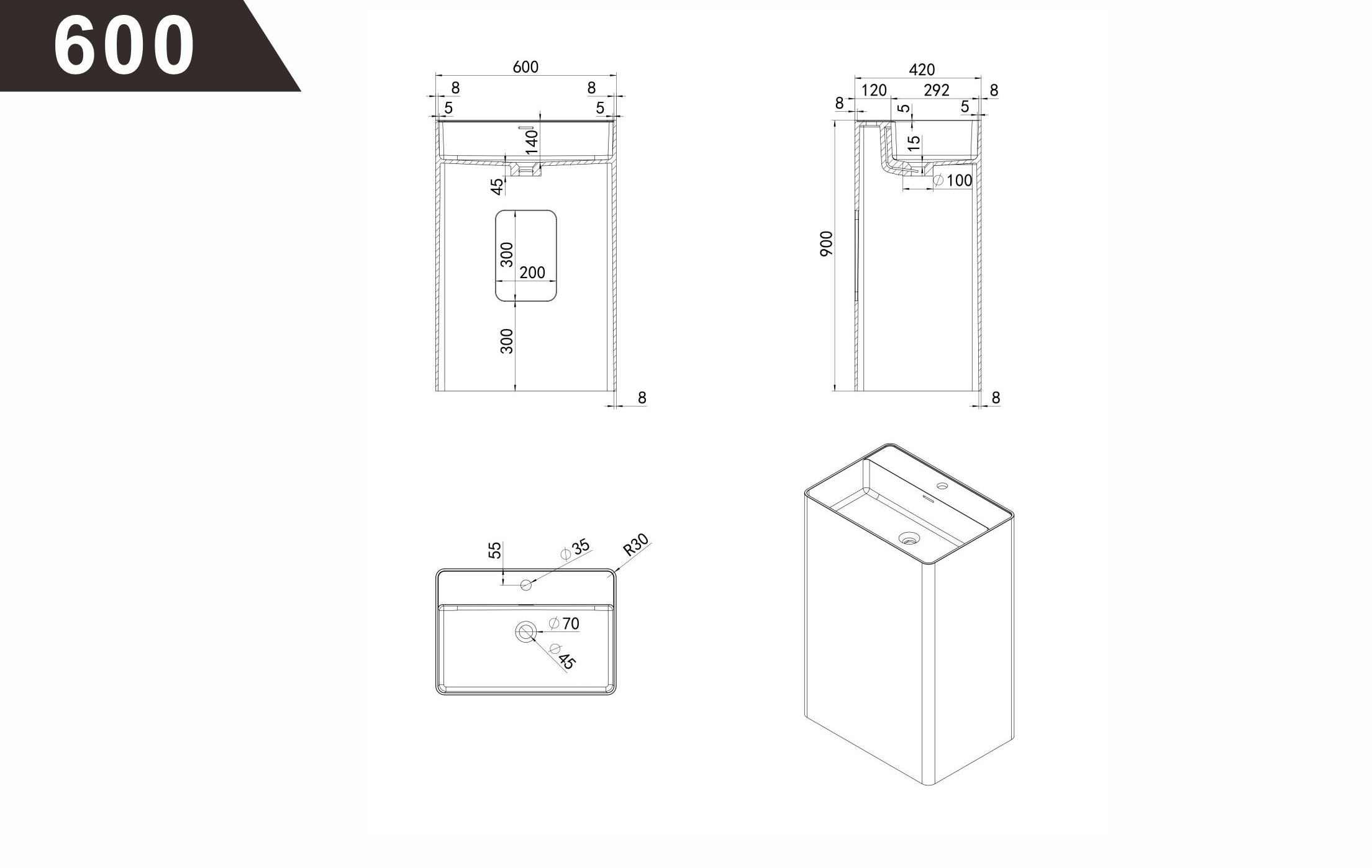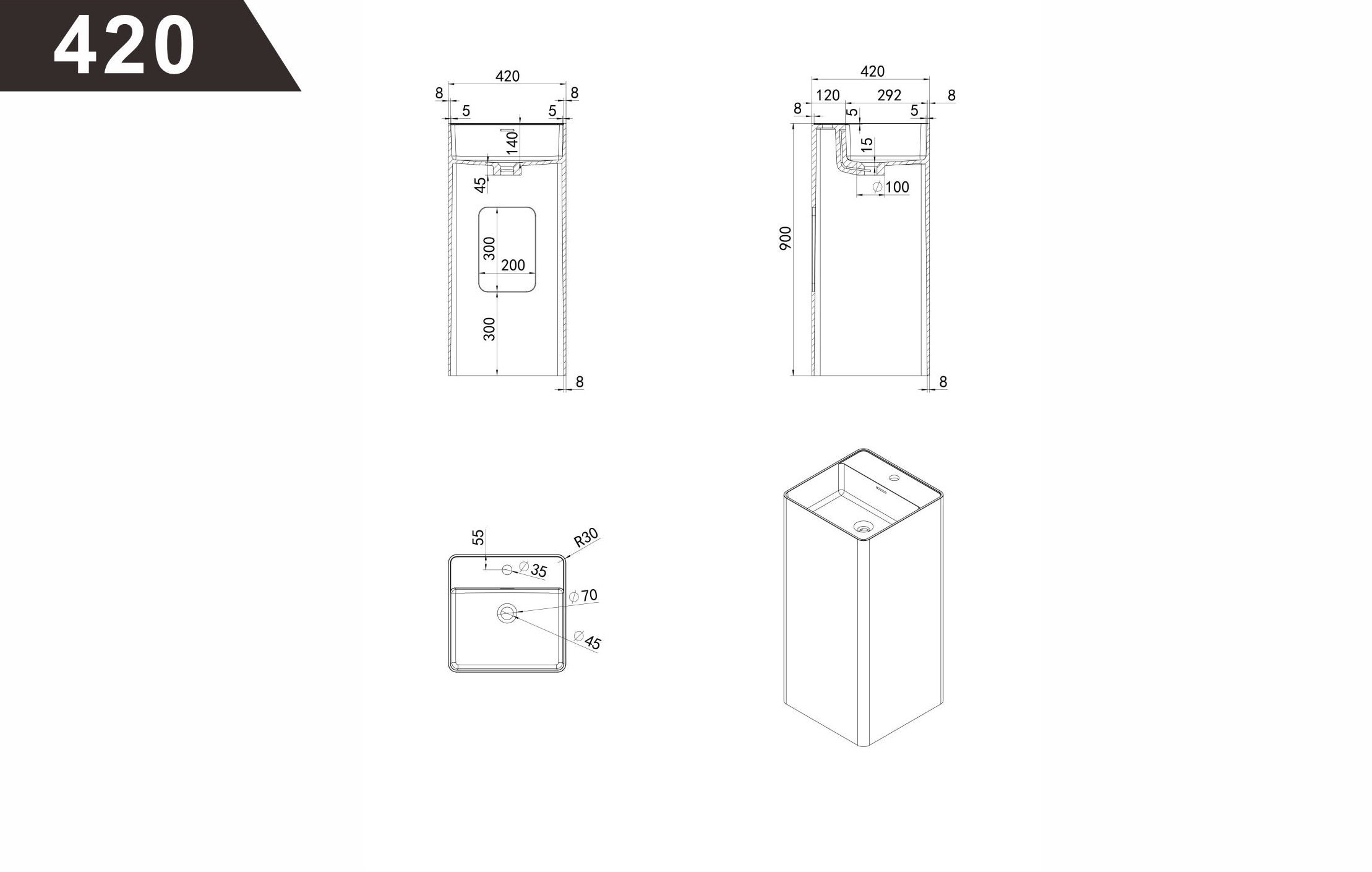 420*420*900mm, 450*450*900mm, 500*420*900mm, 550*420*900mm, 600*420*900mm