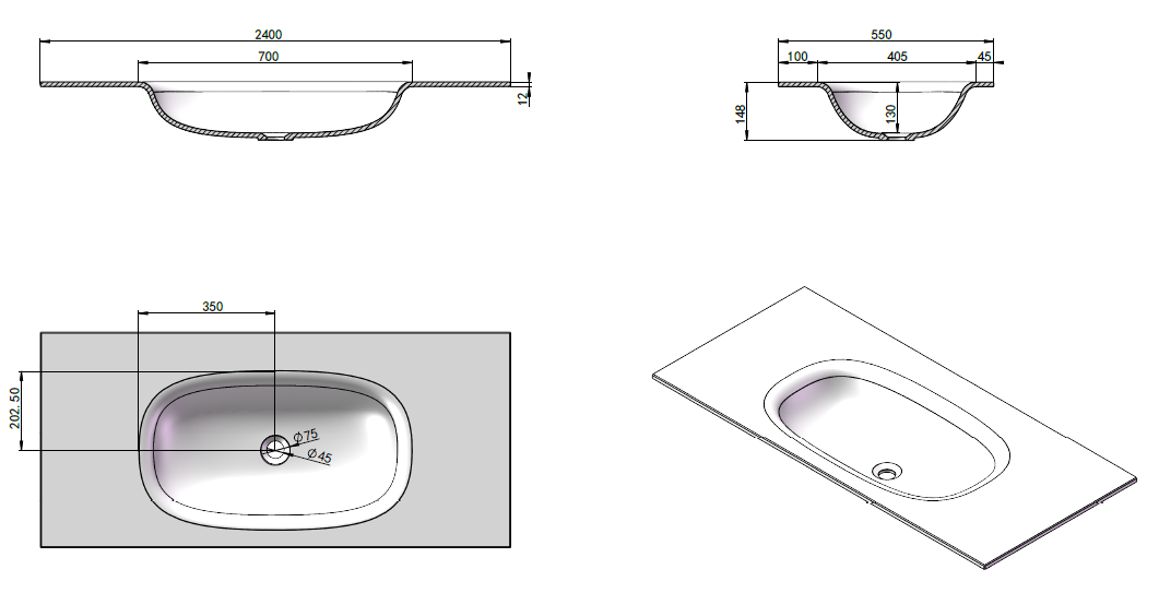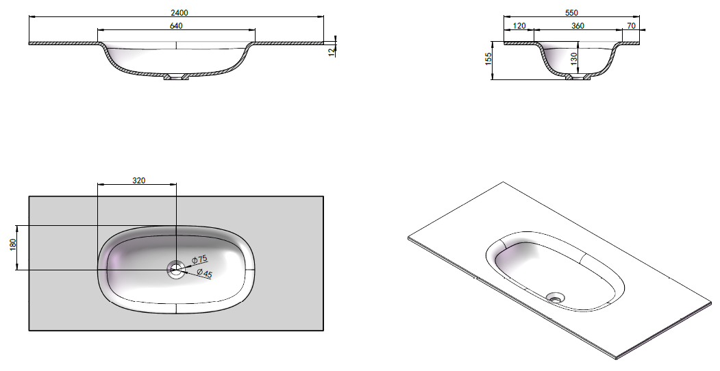 PS-2272A-600PG(Basin Size):600*405*130mm, PS-2272B-700PG(Basin Size):700*405*130mm, PS-2272C-640PG(Basin Size):640*360*130mm
