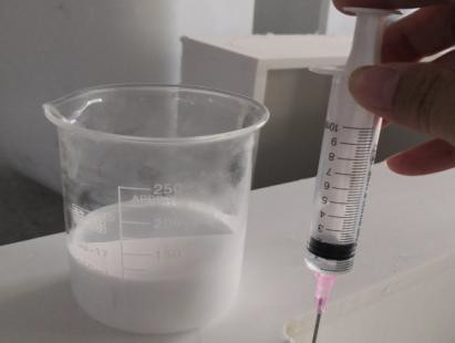 2.Mix liquid material with solidified agent in proportion of 100ml:0.8ml.